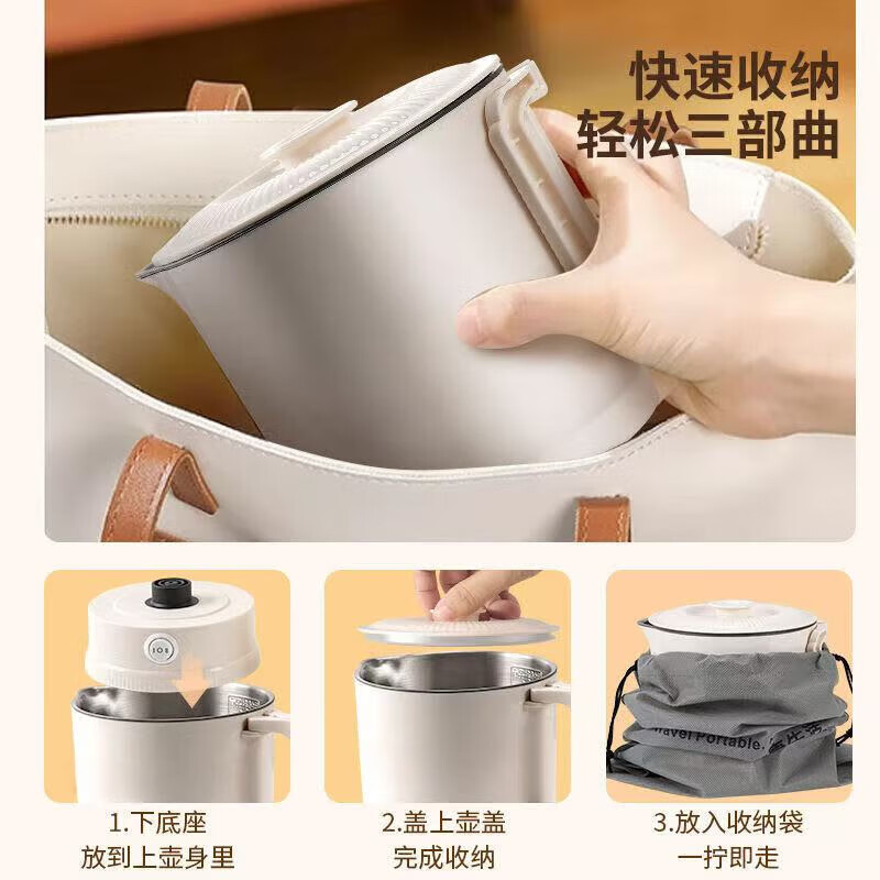XVVMI便携式烧水壶多功能锅旅行折叠电热水壶保温一体全自动304不锈钢小型电煮锅 0.8L 食品级304不锈钢米白色