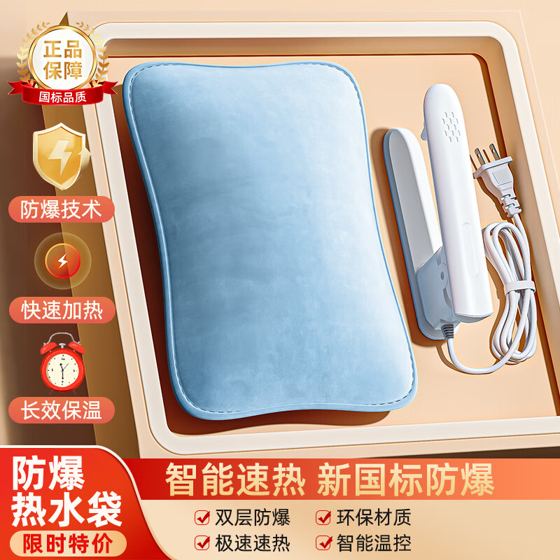 SZTAA电热水袋暖宝宝充电暖手宝暖水袋女生暖肚子暖手暖被窝神器 【新国标防爆】标准灰