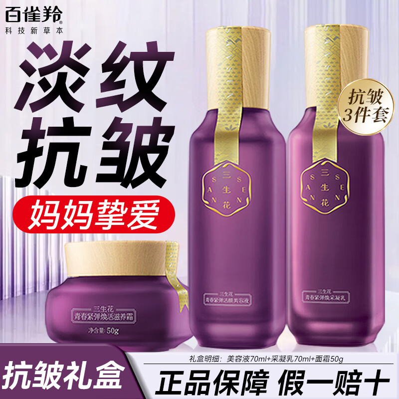 百雀羚(PECHOIN)三生花套装女 淡化细纹抗皱紧致补水保湿水乳中年妈妈护肤品礼盒 水+乳+霜【礼盒】