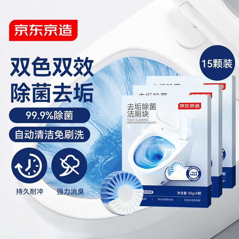 京东京造马桶清洁剂50g*15块 柠檬香洁厕块洁厕宝蓝泡泡洁厕灵厕所洁厕球