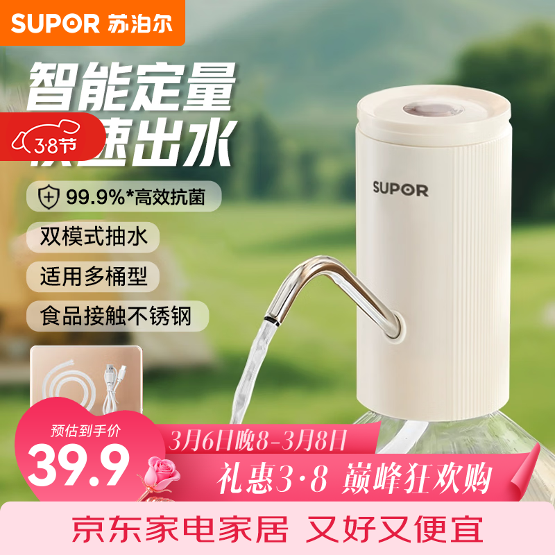 苏泊尔(SUPOR)抽水器桶装水自动抽水器智能定量电动上水器纯净水99.9%抗菌守护 抗菌电动上水器