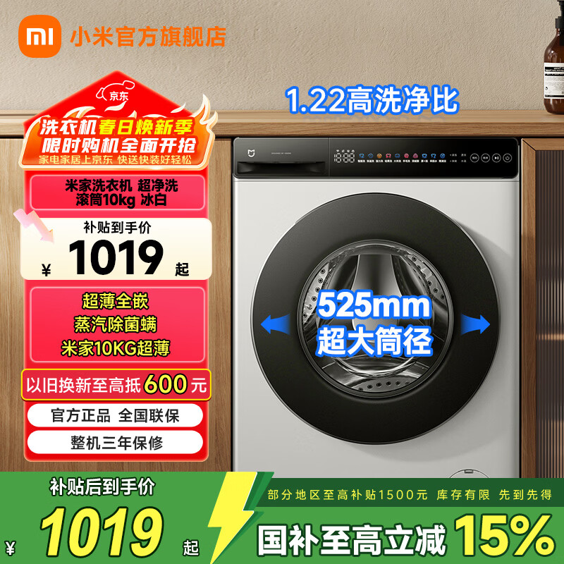 小米(MI)米家 10公斤超净洗直驱全自动滚筒洗衣机 超大筒径 全嵌机身 1.22洗净比 深层除螨