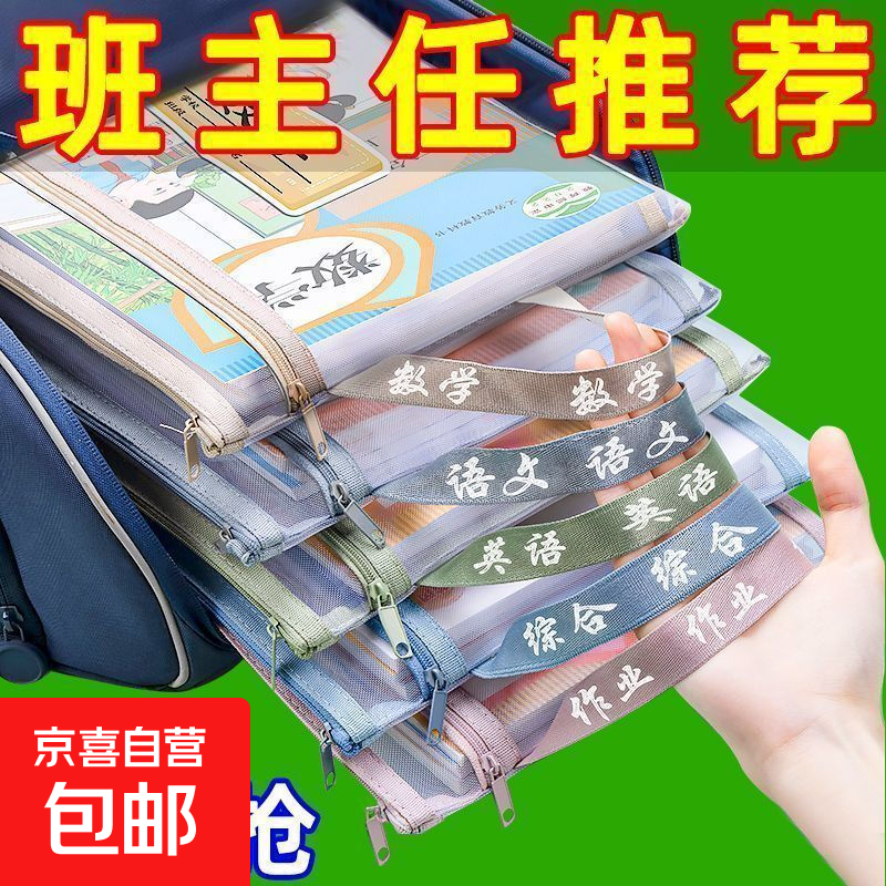 科目分类袋收纳袋学科科目透明大容量初中小学生用书袋拉链式书袋 双层随机科目一个
