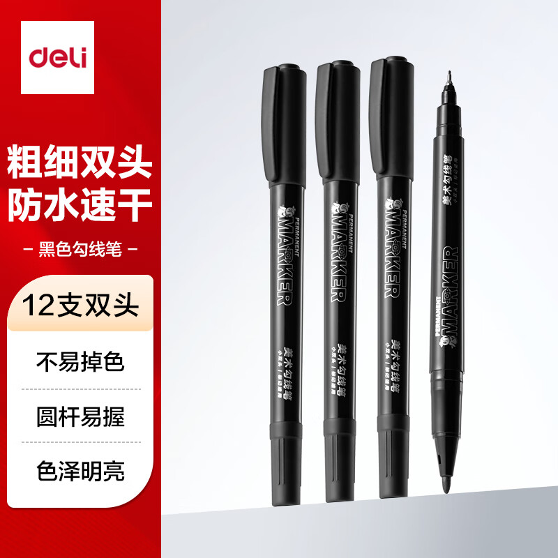 得力(deli)12支美术勾线笔(黑)(12支/盒)专业绘画手绘素描彩绘软款画画女孩儿童礼物S563
