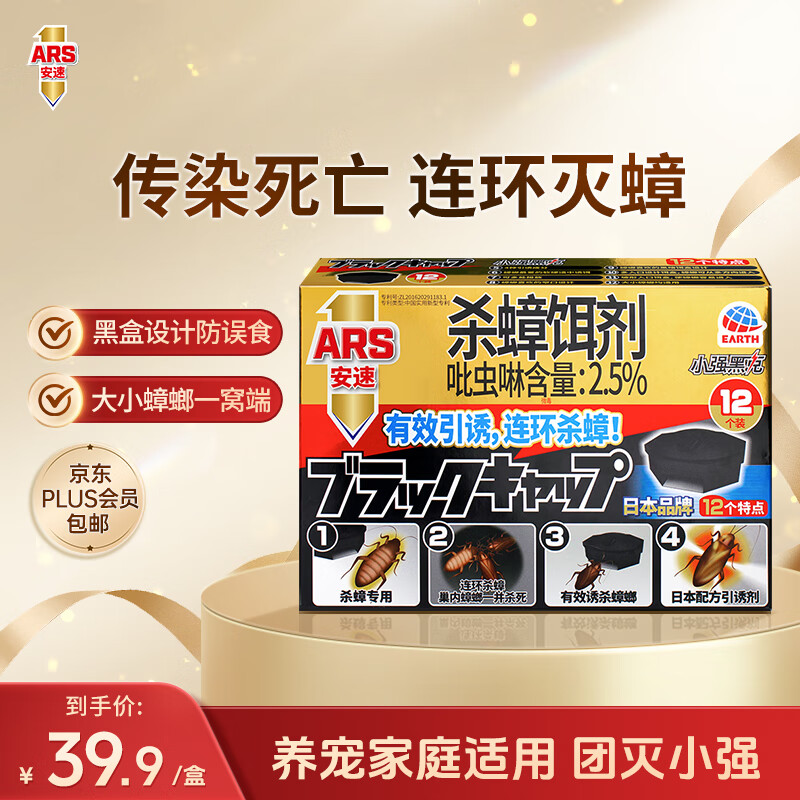 安速蟑螂药热门商品杀蟑饵剂室内全窝端杀大小蟑螂诱饵盒蟑螂屋12枚