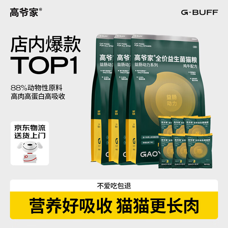 高爷家全价益生菌 高肉冻干 呵护肠胃鸡牛益生菌猫粮1.5kg*3