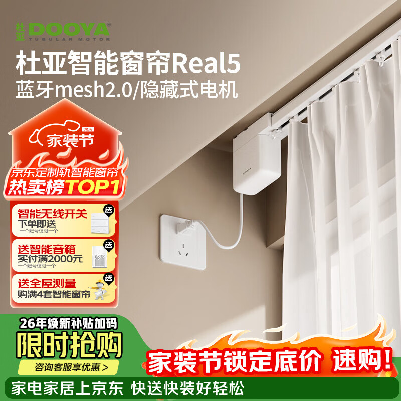 杜亚Real5蓝牙2.0版智能电动窗帘家居自动卧室电机语音控制不含布 3米直轨定制蓝牙版包安装