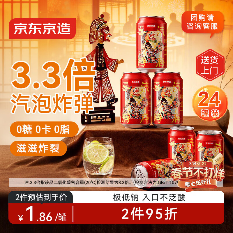 京东京造鲜来多气泡苏打水饮料330ml*24罐0糖0脂0卡原味整箱年货礼盒