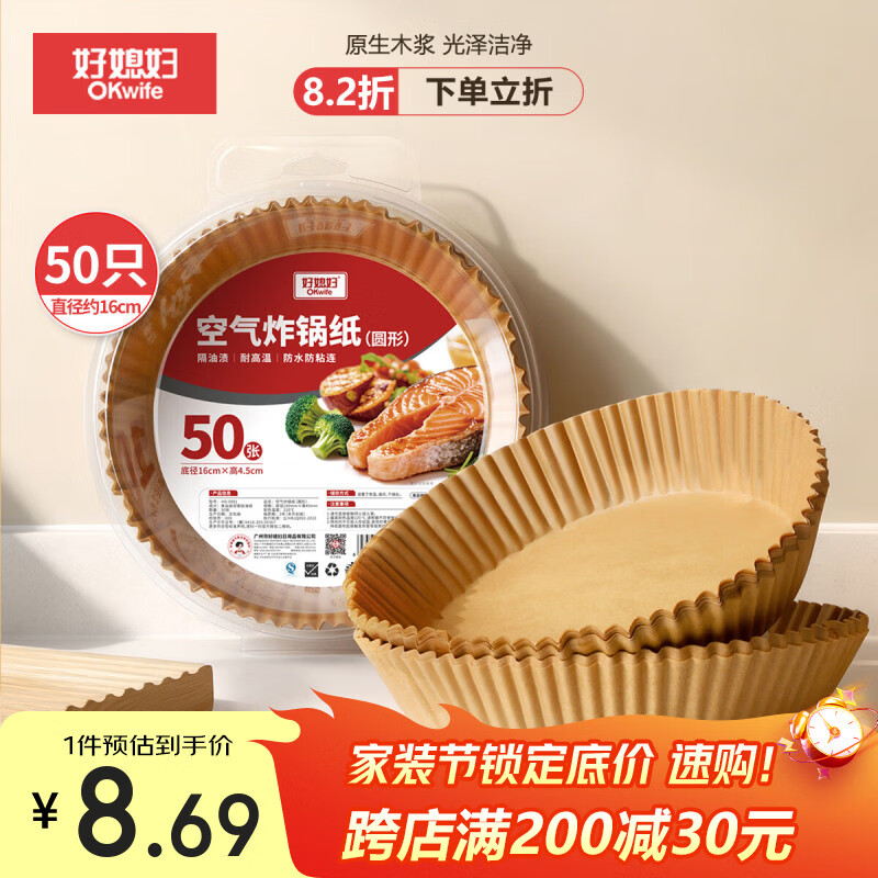 好媳妇空气炸锅专用纸16cm*50只圆形纸盘烧烤肉烘焙吸油一次性隔油纸