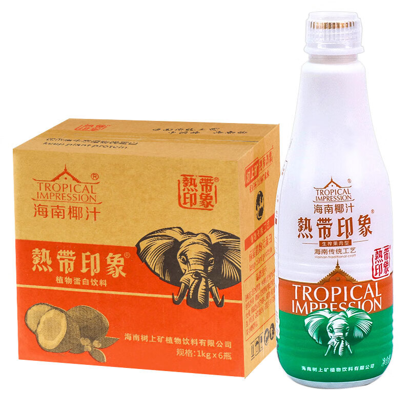 热带印象海南椰汁1kg*6瓶整箱椰奶果汁婚宴酒席植物蛋白饮料椰子汁 海南椰汁1kg*6瓶