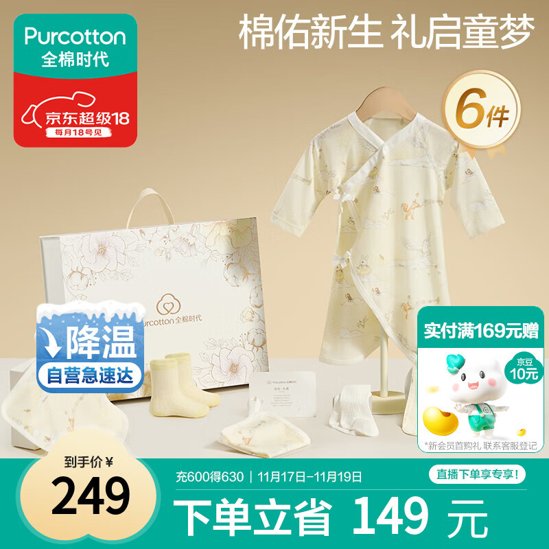 全棉时代新生儿见面礼宝宝周岁满月礼出生礼物婴儿礼盒6件套59(无礼袋)