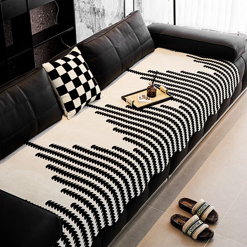 宜诗梵沙发垫子高档沙发垫轻奢2025年流行直排四季通用防滑皮沙发专用垫 【四季通用】黑色 异形古川 70cm*70cm 扶手或靠背