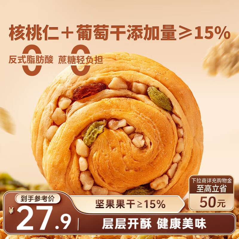 三只松鼠无蔗糖坚果仁手撕面包1.1kg 早餐小面包吐司蛋糕代餐饱腹整箱点心