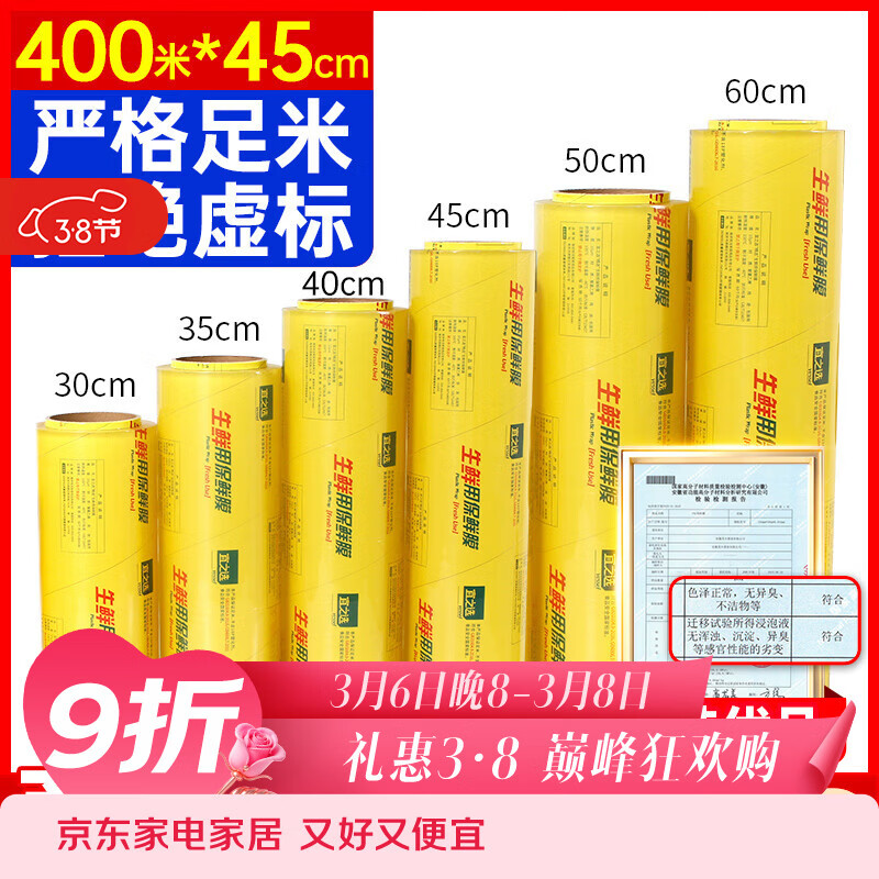 宜之选PVC保鲜膜超大卷商用一次性45cm*400米生鲜食品蔬果搬家打包膜