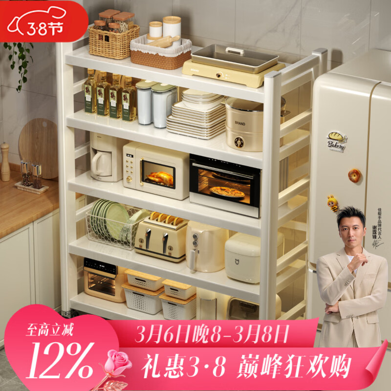 佳帮手厨房置物架落地免安装收纳架一体家用锅架多功能储物架5-80