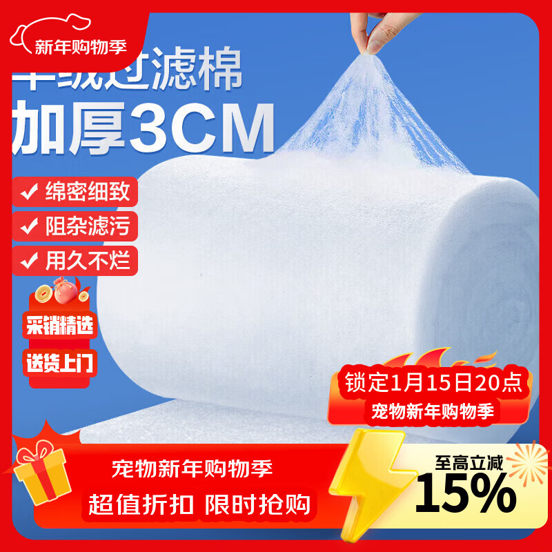 憨憨乐园羊绒棉鱼缸过滤棉高密度材料 魔毯净化替换专用120*30*3cm