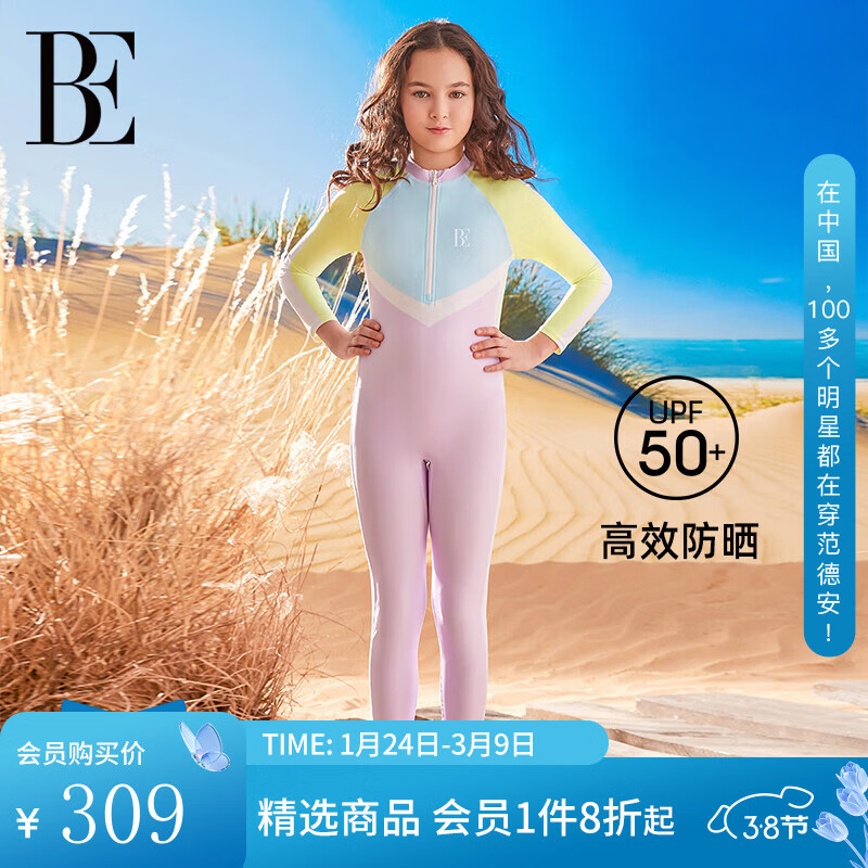 范德安(BALNEAIRE)儿童连体泳衣女童长裤长袖防晒运动海边疏水速干温泉 260205 丁香紫/果绿拼接 150 【高145-155cm重33-40kg】