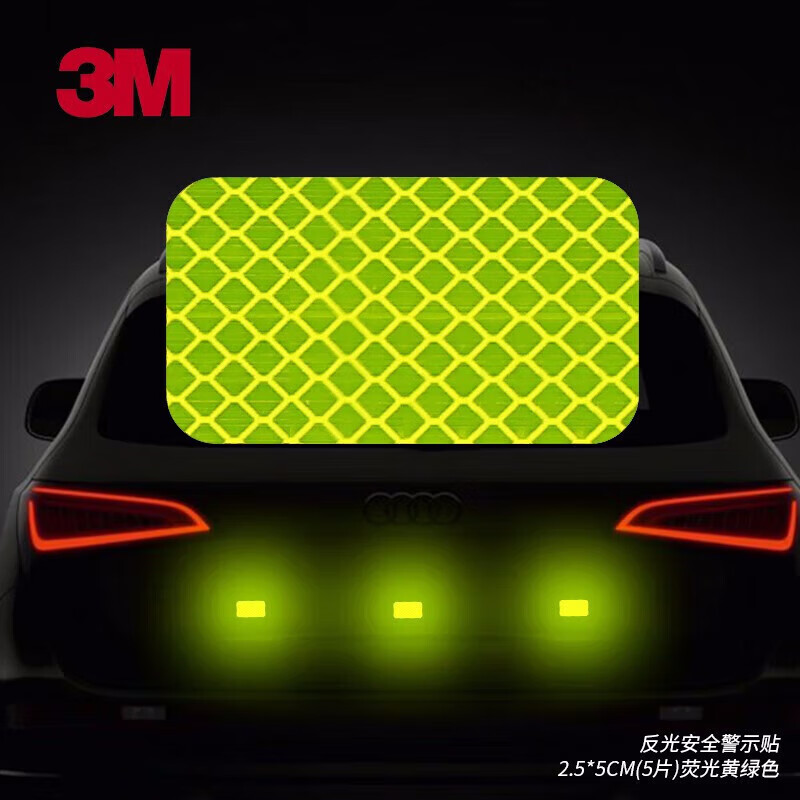 3M反光贴安全警示贴汽车车贴胶贴荧光黄绿色2.5*5厘米5片装