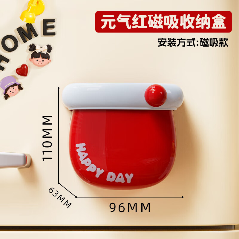 哈乐熊 HA LE BEAR多巴胺磁吸口袋收纳盒厨房冰箱免打孔磁力贴多功能带沥水磁力盒子 元气红【1个装】