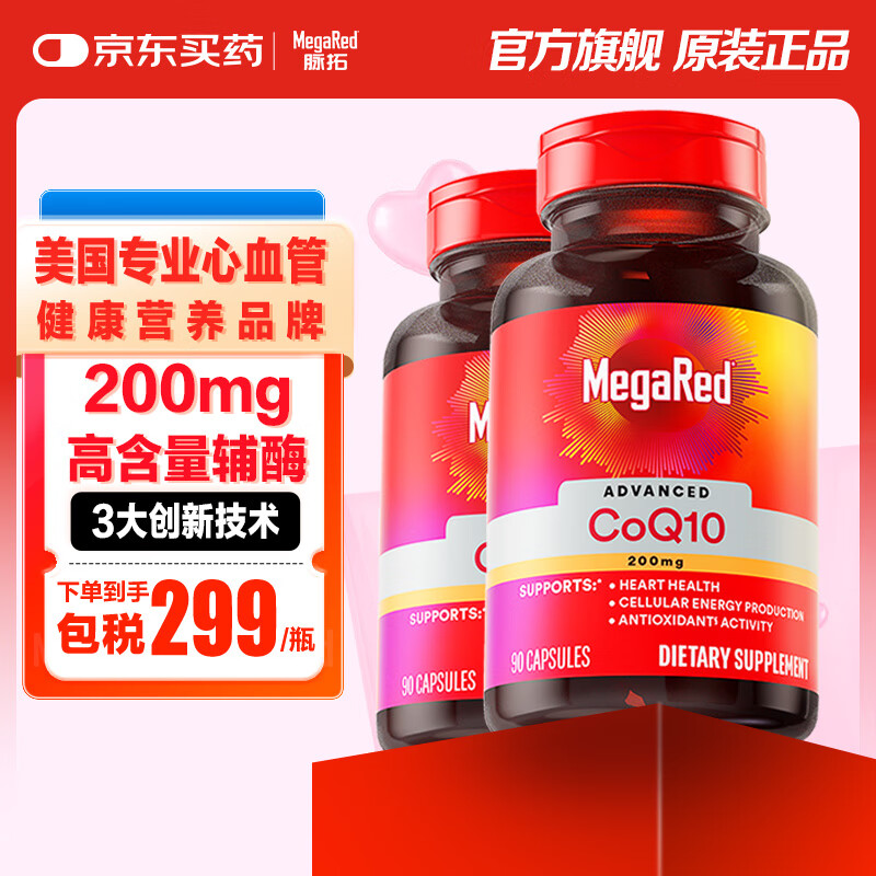 MegaRed脉拓辅酶q10胶囊 美国原装进口 高含量200mg90粒 【2瓶装】高纯度辅酶