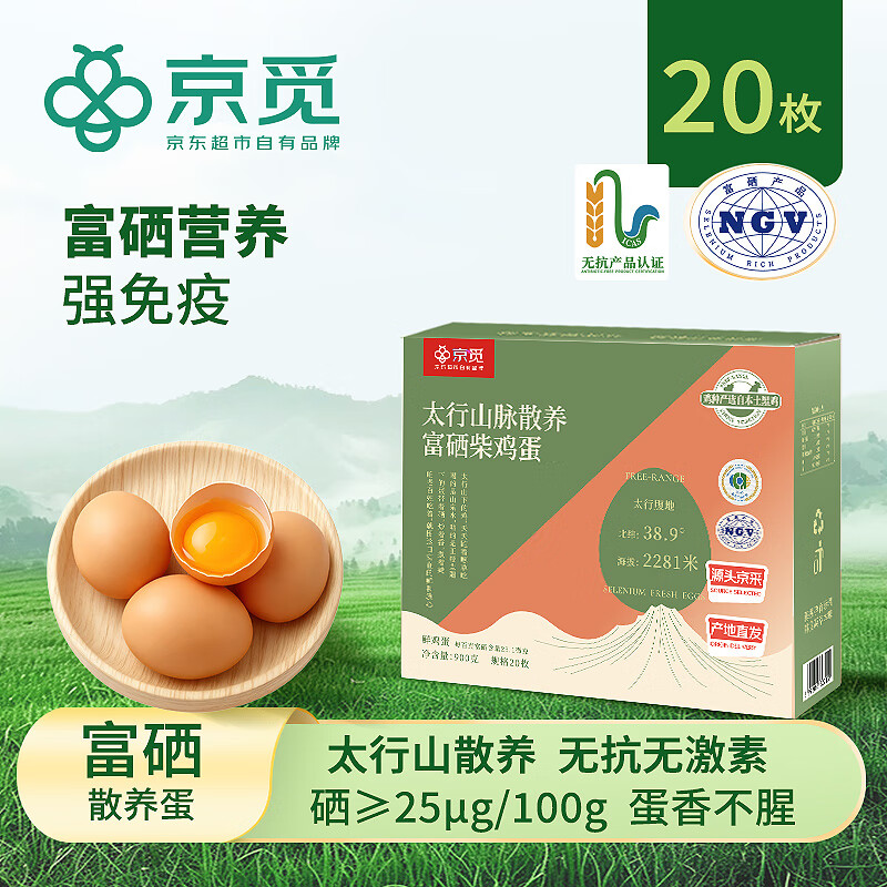 京觅 富硒柴鸡蛋20枚 净重900g 源头直发 礼盒装