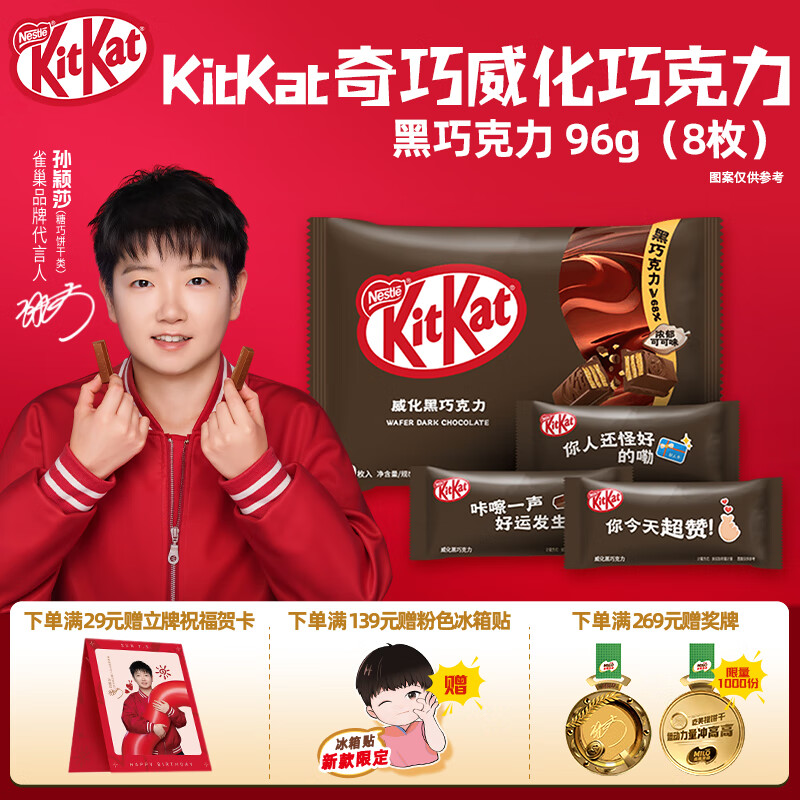 雀巢 奇巧kitkat 威化夹心黑巧克力 96g(8枚) 休闲解馋零食 伴手礼