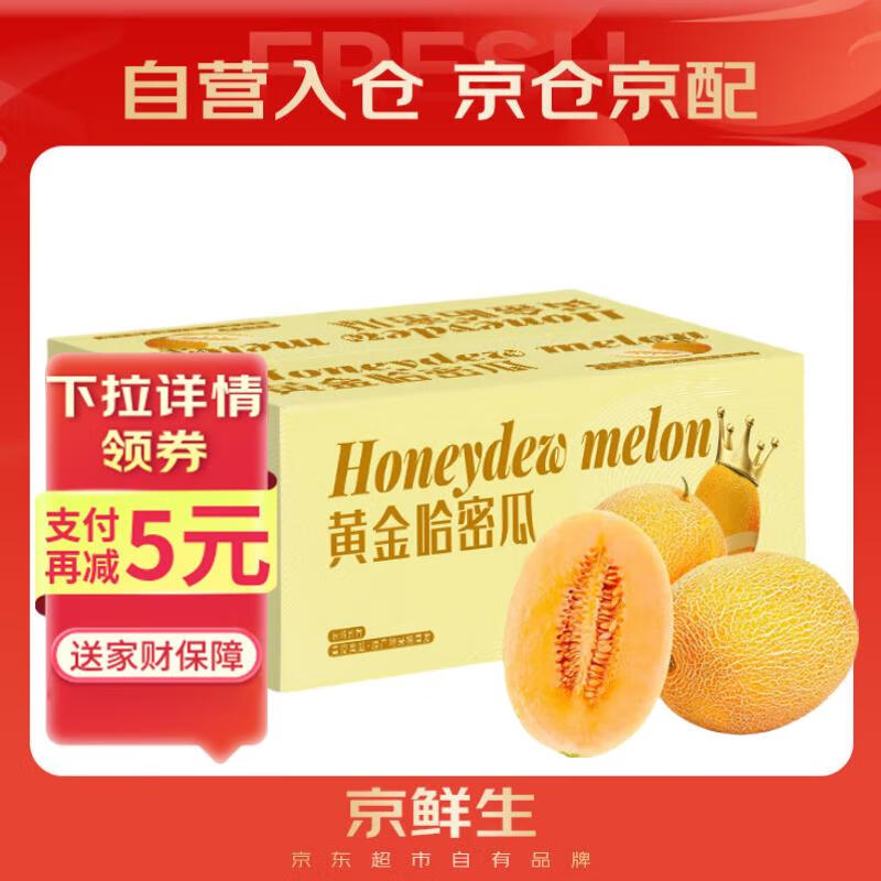 京鲜生 黄金哈密瓜 2粒 单果2.5斤起 净重6-8斤 生鲜水果礼盒