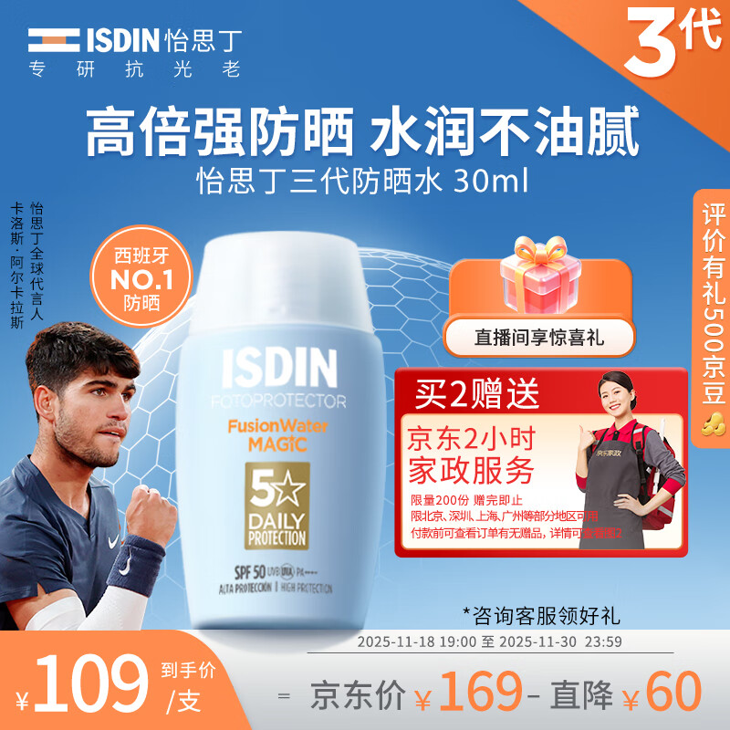 怡思丁(ISDIN)防晒霜隔离30ml SPF50进口面部敏感肌女男士户外军训防晒学生礼物