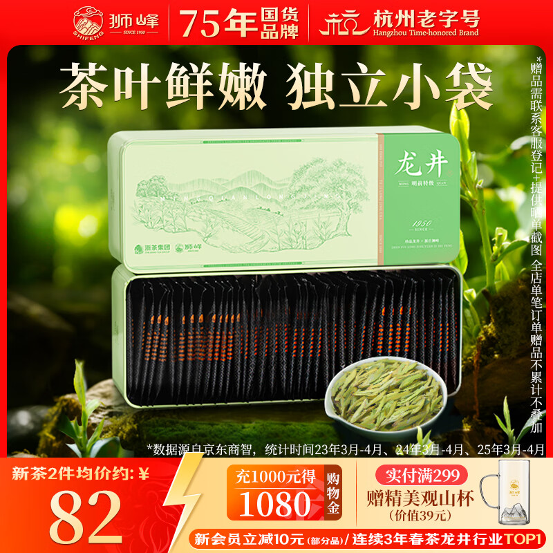 狮峰牌2025新茶绿茶明前龙井43茶叶特级80g春茶小包袋泡装送礼自己喝