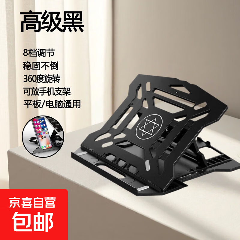 升级款笔记本电脑散热支架办公本支架拯救者r9000苹果Mac升降拖架便捷式增高底座折叠省空间可旋转 星耀黑【可旋转 折叠】带手机支架