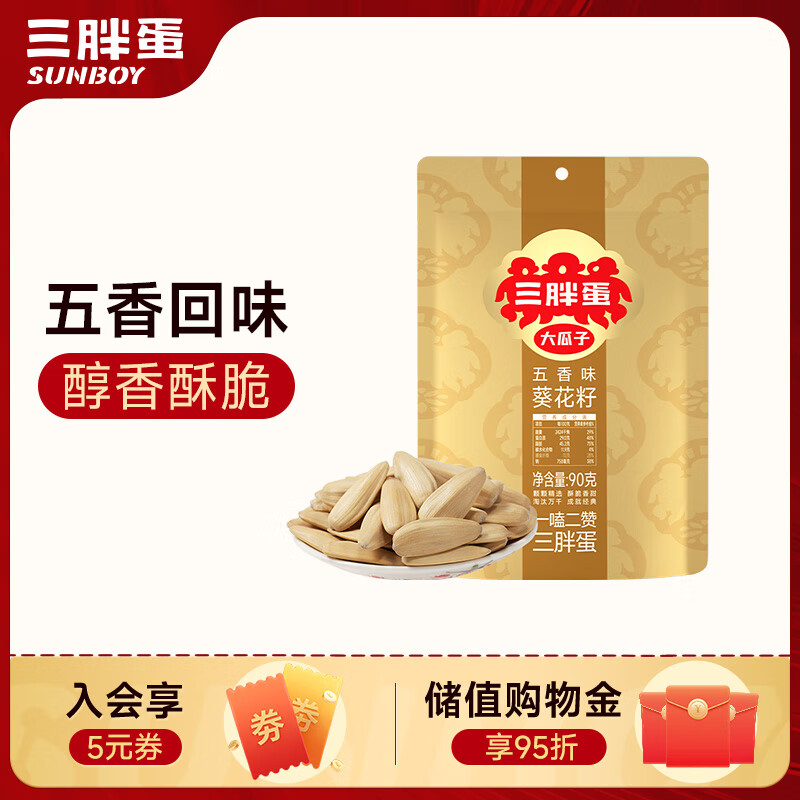 三胖蛋五香瓜子90g 坚果炒货大颗粒打手葵花籽 解馋办公室小零食酒友圈