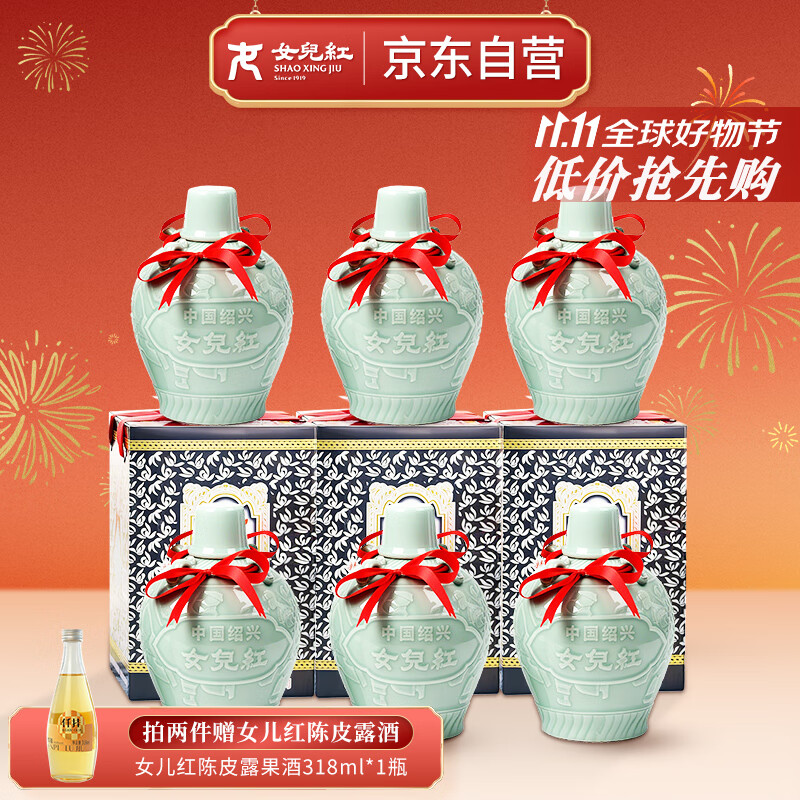 女兒红 青瓷六年 半甜型 绍兴黄酒 1.5L*6坛 整箱装礼盒热卖商品 双十一