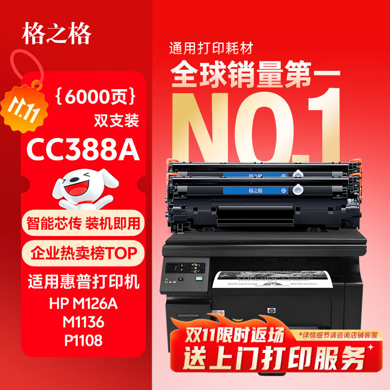格之格m1136硒鼓 388a硒鼓 适用惠普m126a硒鼓 p1106 p1108 p1008 hp m128fn墨盒 m126a cc388a硒鼓 易加粉2支装