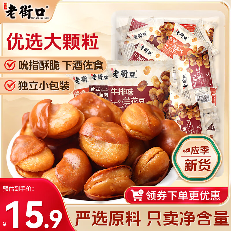 老街口兰花豆混合口味约35包分享装烤肉卤肉牛排味休闲零食炒货年货455g