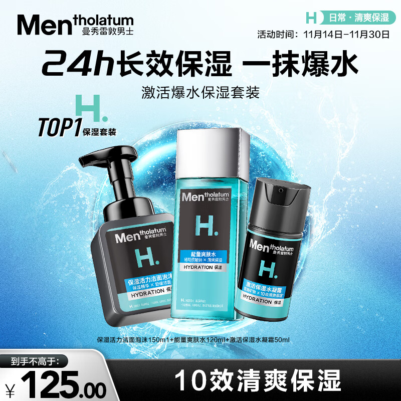 曼秀雷敦男士激活套装洁面泡沫+爽肤水+面霜补水保湿护肤送男友秋冬季礼物