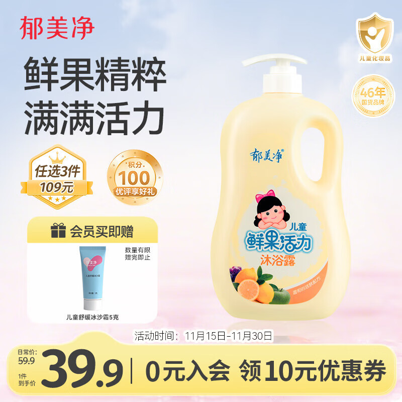 郁美净儿童沐浴露鲜奶温和补水保湿鲜果精华泡泡浴宝宝沐浴露大容量1kg
