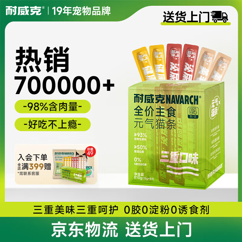 耐威克猫零食猫条营养功能型主食猫条 成幼猫湿粮罐头混合口味54支