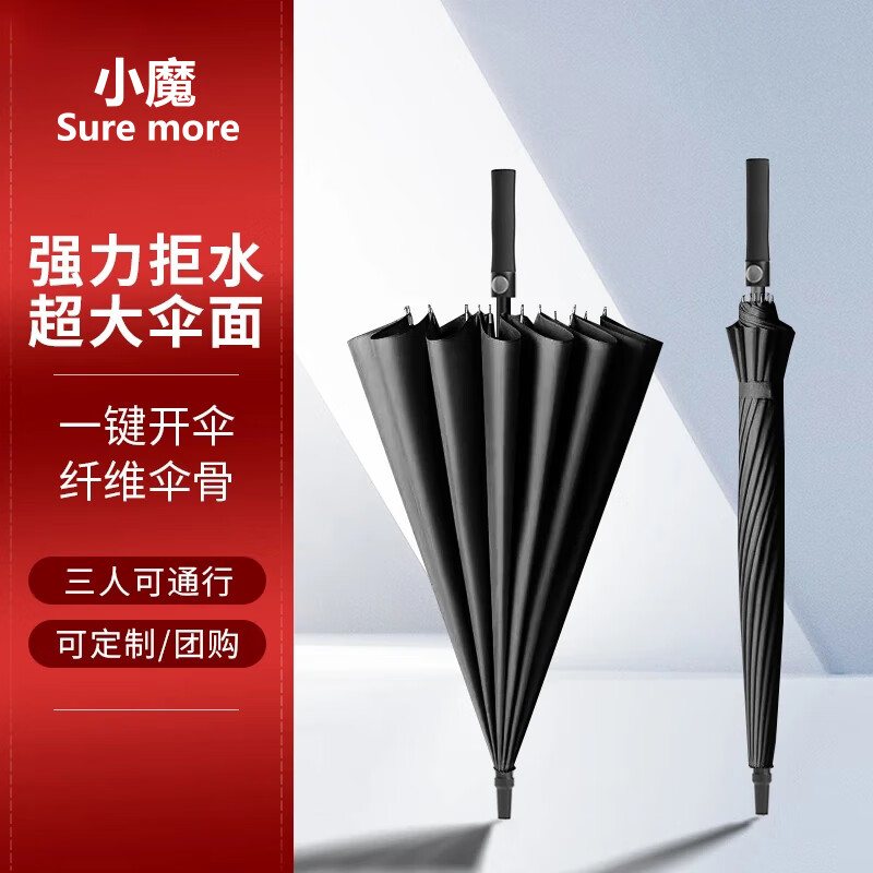 小魔长柄雨伞超大号加固抗风男士高端商务雨伞黑色可定制