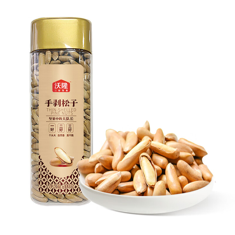 沃隆坚果罐装干果炒货营养健康孕妇儿童零食300g松子高方罐