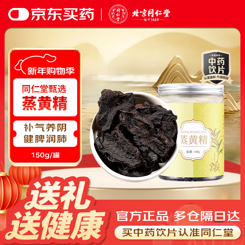 北京同仁堂自营 蒸黄精150g中药饮片 久蒸久晒中药材泡茶泡酒泡水喝 即食熟黄精干片 男人滋补养生茶补气养阴