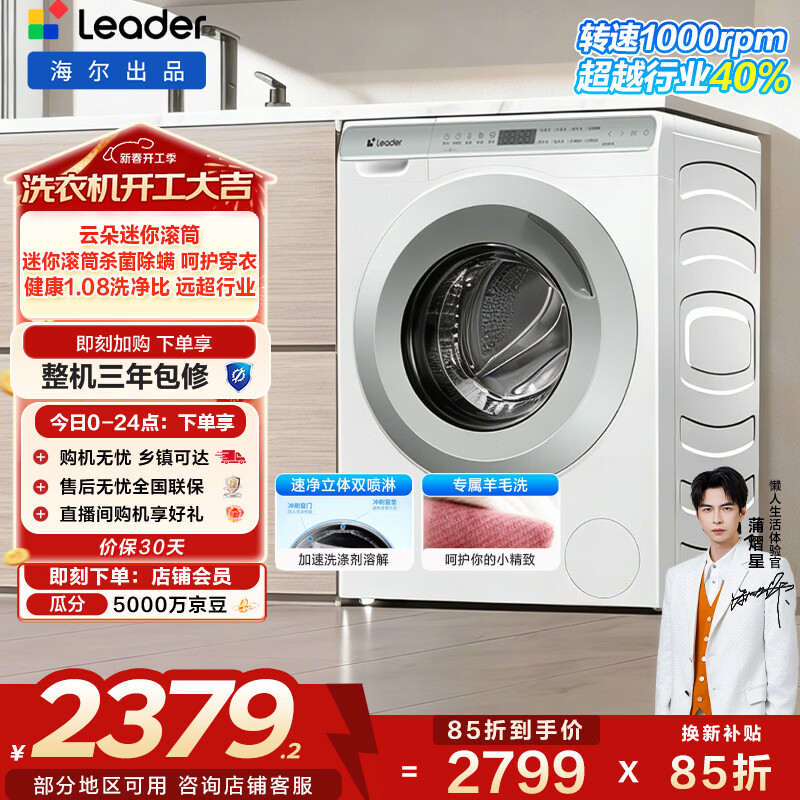 Leader海尔智家出品 滚筒洗衣机全自动小型家用 超薄平嵌 家电补贴15% 3.5KG婴儿内衣洗TQGM35-B80Q2