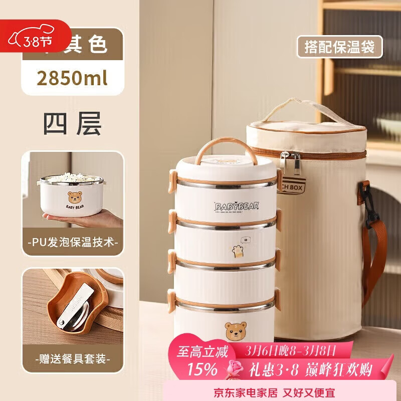 PAKCHOICE保温饭盒24小时超长保温上班族可微波多层大容量316不锈钢饭盒