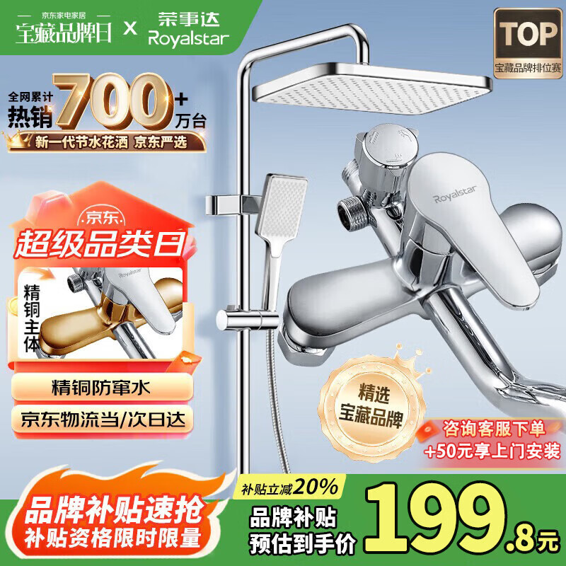 荣事达淋浴花洒全套增压套装喷头增压沐浴头浴室洗浴淋浴器一整套