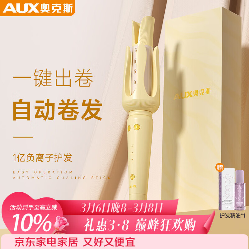奥克斯(AUX)全自动卷发棒32mm负离子寝室女士懒人蓬松便携电动卷发器大波浪持久定型烫发棒生日礼物女奶黄色