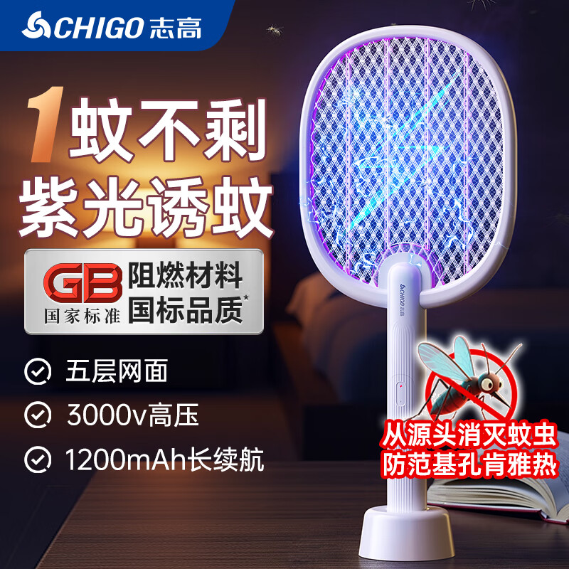 志高(CHIGO)电蚊拍家用充电式灭蚊拍可挂可立诱蚊器灭蚊紫光灯苍蝇拍 大网面