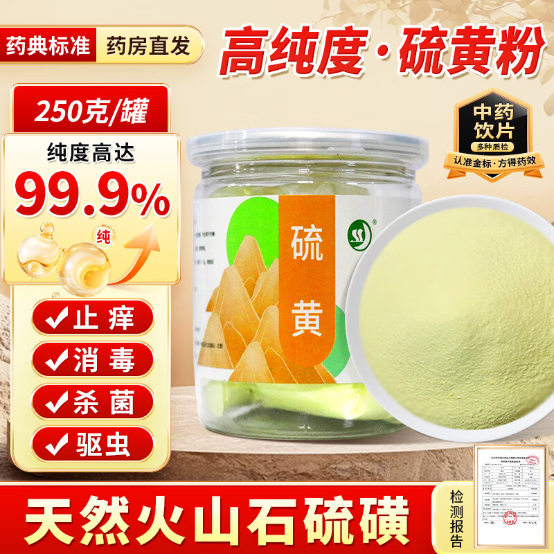 华逸硫黄粉250g【可内服】中药饮片高纯度助阳通便硫磺粉医用级中药材外用杀菌除螨驱虫止痒天然土壤调酸