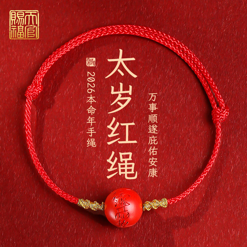 天官赐福高含量朱砂红手绳男女款本命年手链生日礼物 太岁红绳