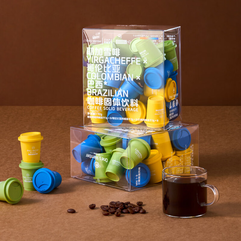 One's Member三种风味速溶咖啡冻干美式拿铁混合装3g*24颗健身运动