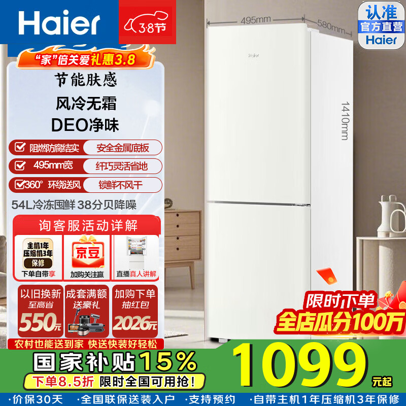 海尔170升两门冰箱风冷无霜节能低噪出租房屋宿舍冰箱小型家用电冰箱迷你小巧不占地方 BCD-170WGHC2E9GL
