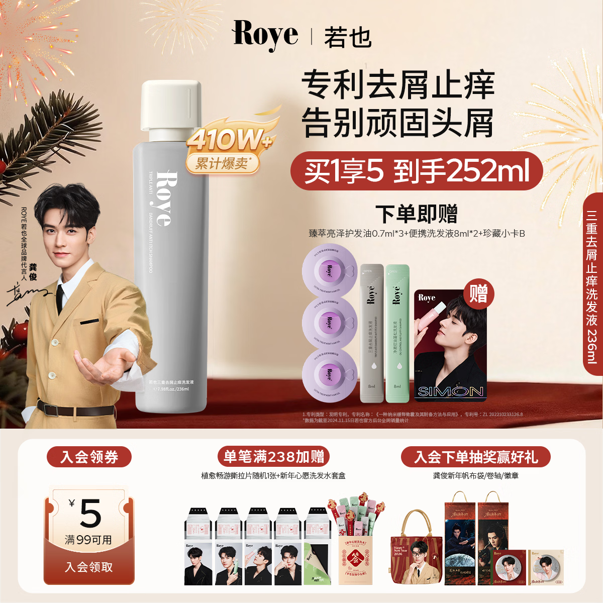 roye若也【龚俊同款】去屑止痒洗发水控油清爽青蒿植萃洗发液236ml